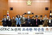 (한국글로벌뉴스 - 박소연 기자) 의정부시의회는 5일 수도권 북부의 오랜 숙원인 GTX-C 노선의 조속한 착공을 촉구하는 성명서를 발표했다. GTX-C 노선은 양주시 덕정역에서 수원역까지 연결되는 국가철도망으로 교통 불편 해소와 지역 균형발전을 위해 반드시 추진되어야 할 국가 핵심사업이다. 지난해 1월, 의정부시청 다목적체육관에서 GTX-C 노선 착공 기념식을 개최했으나 사업 추진 과정에서 정부가 민간사업자와의 공사비 조정 문제 등 핵심 현안을 해결하지 못해 사업이 지연되면서 지역 발전의 추진 동력 또한 오랜 기간 제자리걸음을 하고 있다. 이날 시의원들은(김연균, 권안나, 김현채, 정미영, 김태은, 김현주, 최정희, 이계옥, 강선영, 정진호, 김지호, 조세일 의원) 47만 의정부 시민을 대표하여, GTX-C 사업의 지연으로 수도권 교통 불균형이 지속되고 시민의 이동권 개선이 지체되고 있는 현 상황에 깊은 유감을 표하며, GTX-C의 신속한 착공이 국가가 반드시 이행해야 할 책임임을 천명했다. 김연균 의장은 “정부와 관계기관이 약속한 바를 책임 있게 이행할 것을 강력히 촉구하며”, “앞으로도 GTX-