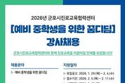 (한국글로벌뉴스 - 박소연 기자) (재)군포시청소년재단 군포시진로교육협력센터는 관내 예비중학생의 학교 적응과 진로 기초 역량 강화를 위해 '2026년 군포시진로교육협력센터 예비중학생을 위한 꿈디딤' 프로그램에 참여할 강사를 채용한다고 밝혔다. 이번 강사 채용은 초등학교에서 중학교로의 학년 전환기를 앞둔 예비중학생을 대상으로, 중학교 생활 전반에 대한 이해를 높이고 진로 탐색과 자기 이해를 돕는 맞춤형 프로그램을 운영하기 위한 것으로, 총 3명 내외의 전문 강사를 선발할 예정이다. 채용 공고는 2026년 1월 29일부터 2월 4일까지 진행되며, 지원서 접수는 2월 5일부터 2월 11일까지이다. 접수는 이메일을 통해서만 가능하다. 선발된 강사는 예비중학생을 대상으로 중학교 생활 적응, 학습 및 진로 정보 제공, 학습 동기 강화 등을 주제로 한 ‘꿈디딤’ 프로그램을 운영하게 된다. 군포시진로교육협력센터 이혜진 센터장은 “예비중학생 시기는 중학교 생활에 대한 불안과 기대가 공존하는 시기”라며 “아이들이 새로운 환경에 안정적으로 적응하고, 스스로의 진로를 탐색할 수 있도록 돕는 프로그램이 될 수 있도록 전문