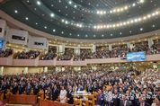 (한국글로벌뉴스 - 박소연 기자) 이재명 대통령과 김혜경 여사는 오늘 오후 여의도순복음교회에서 열린 ‘2026 한국교회 부활절 연합예배’에 참석해 부활의 의미를 되새기며 함께 예배를 드렸다. 이번 부활절 연합예배는 총 73개 교단, 7천여 명이 함께 참여한 뜻깊은 행사이다. '부활! 평화! 사랑'이라는 주제 아래, ‘생명의 부활, 한반도 평화’(요한복음 20장 19-23절)를 표어로 삼아 열렸다. 예배는 2026 부활절연합예배준비위원회 대회장인 이영훈 여의도순복음교회 담임목사의 대회사로 시작해 ▲대표기도 ▲성경봉독 ▲설교 ▲특별기도 ▲통성기도 ▲축도 순으로 진행됐다. 이재명 대통령은 축사를 통해 “해마다 개최되는 부활절 연합예배는 우리 사회에 사랑과 희망의 메시지를 전해 왔다”면서 “늘 나라와 국민을 위해 기도해 주시는 한국교회와 성도 여러분께 국민을 대표해서 감사드린다”고 전했다. 이어 “세계를 지탱해오던 평화와 번영의 질서가 약화되고, 연대와 화합이 아닌 갈등과 다툼이 심화되고 있다”면서 “이럴 때일수록 부활의 의미와 함께 오늘의 주제인 평화, 사랑의 의미를 다시 깊이 되새겨야 할 것”이라고 언