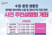 (한국글로벌뉴스 - 박소연 기자) 성남시는 오는 12월 17일 수진2구역을 시작으로 수정·중원 생활권 5개 구역의 재개발 정비계획 수립 및 정비구역 지정에 대한 사전 주민설명회를 순차적으로 개최한다. 이번 주민설명회는 지난 9월 23일 착수한 수진2, 태평2‧4, 산성, 단대, 상대원1‧3 등 5개 구역의 ‘재개발 정비계획 수립 및 정비구역 지정 용역’을 통해 검토된 각 구역의 정비계획안과 추정분담금에 대한 주민 의견을 청취하기 위해 마련됐다. 정비계획안에는 각 구역의 토지이용계획, 도시계획시설 및 생활인프라(SOC) 확충 방안, 건축물 계획 등이 포함된다. 사전 주민설명회 일정은 17일 오전 10시 수진2구역, 오후 2시 태평2‧4구역을 비롯해, 19일 오후 2시 산성구역과 22일 오후 2시 단대구역 설명회가 수정구청 대회의실에서 진행된다. 24일 오후 2시에는 상대원1‧3구역 설명회가 중원구청 대회의실에서 열린다. 주민설명회는 별도의 사전 등록 없이 해당 구역 토지등소유자를 비롯해 재개발 사업에 관심 있는 주민 누구나 참석할 수 있다. 신상진 성남시장은 “정비계획 수립 단계에서 주민과 의견을 나
