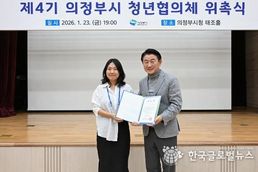 (한국글로벌뉴스 - 박소연 기자) 의정부시는 1월 23일 시청 태조홀에서 ‘제4기 의정부시 청년협의체 위촉식 및 오리엔테이션’을 개최하고, 청년 정책 거버넌스의 새로운 출발을 알렸다. 제4기 청년협의체는 공개 모집을 통해 선발된 대학생, 직장인, 창업가 등 다양한 분야의 청년 41명으로 구성됐다. 이들은 오는 2027년 12월까지 2년의 임기 동안 각각의 분과로 나눠 의정부시 청년 정책의 발굴과 모니터링, 시정 참여 활동을 수행하게 된다. 이날 행사는 1부 위촉식과 2부 오리엔테이션으로 진행됐다. 먼저 1부에서는 위촉장 수여와 격려사, 전체 기념 촬영을 통해 제4기의 힘찬 출발을 알렸다. 2부에서는 본격적인 오리엔테이션이 진행됐으며, 특히 ‘청년자율예산제 운영 계획’과 ‘협의체 역량 강화 네트워킹’ 등 연간 핵심 로드맵을 공유해 위원들의 뜨거운 관심을 모았다. 시 관계자는 “청년협의체 위원들은 정책의 단순한 수혜자가 아니라, 도시의 미래를 함께 설계하는 중요한 시정 파트너”라며 “청년들의 참신한 제안이 실제 정책으로 이어질 수 있도록 시에서도 행정적 지원을 아끼지 않겠다”고 말했다. 한