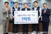 (한국글로벌뉴스 - 박소연 기자) 기아(주) 노사가 “수원시 취약계층 지원에 사용해달라”며 1억 원을 한국사회복지협의회에 기탁했다. 기부금은 수원시사회복지협의회를 통해 수원시 복지사각지대와 취약계층 지원에 사용될 예정이다. 12월 31일 수원시청 시장 집무실에서 열린 기부금 전달식에는 이재준 수원시장, 하임봉 전국금속노동조합 기아자동차지부장, 장명찬 수원시사회복지협의회장 등이 참석했다. 이재준 수원시장은 “수원시 지역사회에 관심을 가지고 따뜻한 나눔을 실천해 주셔서 감사드린다”며 “수원시사회복지협의회와 함께 도움이 필요한 곳에 소중한 마음을 잘 전달하겠다”고 말했다.