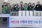 (한국글로벌뉴스 - 박소연 기자) 영통구 매탄3동은 지난 19일 매탄3동 새마을부녀회가 ‘사랑의 반찬 나눔’ 행사를 진행했다고 밝혔다. 이른 아침부터 매탄3동 행정복지센터로 모인 새마을부녀회원들은 불고기, 나물반찬, 열무김치 등을 정성스럽게 조리해 관내 어려운 이웃 25가구에 전달했다. ‘사랑의 반찬 나눔’은 어려운 이웃들에게 반찬을 나누는 새마을부녀회의 대표 봉사활동이다. 매탄3동 새마을부녀회는 연 4회 정기적으로 반찬을 나눔으로써 이웃 간의 소통에 앞장서 아름다운 지역사회를 만드는 데 기여하고 있다. 김정이 매탄3동 새마을부녀회 회장은 “어려운 이웃에게 작은 도움이라도 되기를 바라는 마음으로 매년 사랑의 반찬 나누기를 하고 있다”며 “이 반찬을 통해 이웃들이 행복했을 느끼셨으면 좋겠다”고 말했다. 김병목 매탄3동장은 “반찬 나눔에 참여해주신 새마을부녀회 회원님들께 감사드리며 따뜻한 매탄3동 지역 사회를 만들기 위해 노력하겠다”고 답했다.