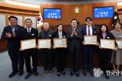 (한국글로벌뉴스 - 박소연 기자) 오산시의회는 6일 본회의장에서 ‘오산시의회 의장 표창 시상식’을 열고 지역 발전과 주민 자치 활성화에 헌신한 위원 8명에게 의장 표창을 수여했다. 수상자는 ▲중앙동 최하늘 위원 ▲대원1동 전해자 위원 ▲대원2동 권옥선 위원▲남촌동 박순용 위원 ▲신장1동 정정숙 위원 ▲신장2동 이선자 위원 ▲세마동 남호석 위원 ▲초평동 이주왕 위원 등 모두 8명으로 주민과 행정을 잇는 가교로서 지역사회 발전에 기여한 공로를 인정받았다. 이상복 의장은 인사말을 통해 “지역 곳곳에서 시민들의 더 나은 삶을 위해 헌신해 오신 여러분이야말로 진정한 풀뿌리 민주주의의 주인공”이라고 강조했다. 이어 “그동안 현장에서 묵묵히 책임을 다해준 주민자치위원들의 노고에 깊이 감사하다”며 “앞으로도 변함없이 주민자치위원회가 걷는 길이 오산의 내일을 밝히는 힘이 되길 바란다”고 말했다. 이 의장은 “오산시의회는 주민의 참여와 자치가 더욱 활짝 꽃필 수 있도록 든든한 지원군이 될 것”이라고 덧붙였다.