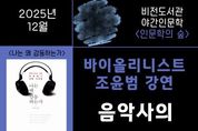 (한국글로벌뉴스 - 박소연 기자) 평택시립 비전도서관이 오는 12월 18일 저녁 7시 조윤범 바이올리니스트를 초청하여 ‘음악사의 하이라이트’를 주제로 야간 인문학 강연을 진행한다. ‘음악사의 하이라이트’는 방대한 서양 음악사의 흐름을 2시간으로 압축하여 마치 영화를 보듯 자연스럽게 이해할 수 있는 강연이다. 각 시대의 대표적인 사건과 음악적 변화를 통해 클래식을 깊이 있고 풍부하게 만날 소중한 기회가 될 것으로 기대된다. 조윤범 바이올리니스트는 콰르텟엑스의 리더이자 편곡자, 저자, 음악 해설가, 방송진행자로 '콰르텟엑스와 함께하는 조윤범의 파워클래식', CBS음악FM '아름다운 당신에게', KBS1TV '문화책갈피'의 '청바지를 입은 클래식', MBC라디오 '굿모닝FM'의 클래식 음악 코너, tvN '어쩌다 어른'에서 진행과 강연을 통해 클래식의 대중화에 앞장섰으며, 최근에는 EBS1 '나의 두 번째 교과서' 음악편에서 10강에 걸친 방송을 진행해 큰 호응을 얻고 있다. 지은 책으로는 '조윤범의 파워클래식 1, 2권', '나는 왜 감동하는가', '클래식 A-yo'가 있다.