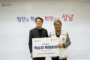 (한국글로벌뉴스 - 박소연 기자) 성남시는 ‘2026년도 적십자 특별회비’ 300만원을 대한적십자사 경기도지사에 전달했다고 23일 밝혔다. 전달식은 21일 시청 4층 제2회의실에서 임종철 성남시 부시장과 이재정 대한적십자사 경기도지사 회장, 적십자 봉사회 회원 등이 참석한 가운데 열렸다. 임종철 성남시 부시장은 “도움이 필요한 이들에 조금이나마 힘이 됐으면 한다”면서 “대한적십자가 추진 중인 모금 운동에 성남시도 적극 동참해 시민의 자발적인 참여 분위기를 조성해 나가겠다”고 말했다. 적십자회비는 자율적으로 참여하는 국민 성금으로, 모금액은 취약계층 발굴·지원, 국내외 재난 현장 구호 활동, 공공의료 지원, 안전교육 등에 쓰인다. 모금은 연중 진행되며, 오는 3월 31일까지는 집중 모금 기간이다. 납부는 대한적십자사 전화 자동 응답 시스템, 큐알 코드, 금융기관 지로 창구 등 다양한 방법으로 할 수 있다. 적십자회비는 법정기부금에 해당해 연말정산 때 소득공제 혜택을 받는다.