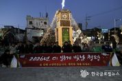 (한국글로벌뉴스 - 박소연 기자) 가평군 청평면은 2일 오후 5시 청춘역1979 시계탑 광장에서 ‘2026년 새해맞이 홍보탑 점등식’을 열었다. 이번 행사는 지역 주민과 함께 새해의 건승을 기원하고 공동체가 나누는 희망과 연대의 의미를 되새기기 위한 자리였다. 점등식에는 박성규 청평면장, 김경수 가평군의회 의장과 김종성 부의장, 임광현 경기도의회 의원, 지역 주민 등이 참석했다. 점등식은 지역 가수의 식전 공연을 시작으로 사회자의 행사 안내, 내빈 소개, 기념사와 축사 순으로 이어졌다. 홍보탑은 연말연시 지역의 랜드마크 역할을 하며 주민과 방문객에게 따뜻한 메시지를 전할 예정이다. 박성규 청평면장은 “면민 여러분과 함께 새해맞이 홍보탑 점등식을 하게 돼 매우 뜻깊다”며 “다가오는 2026년 한 해도 안전하고 따뜻한 지역 공동체를 만들기 위해 최선을 다하겠다”고 말했다.