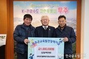 (한국글로벌뉴스 - 박소연 기자) 무주반딧불복분자영농조합법인은 지난 26일 (재) 무주군교육발전장학재단에 장학금 1백만 원을 기탁했다. 정병주 회장은 “무주반딧불복분자영농조합 회원들은 항상 무주 발전과 이웃의 행복을 위해 솔선수범하기 위해 노력하고 있다”라며 “오늘 전하는 장학금에도 그런 마음을 담았다”라고 전했다. 이어 “무주군 지역의 교육과 농업이 상생하여 지역소멸 위기를 극복해 나갈 수 있기를 진심으로 기원한다”라고 밝혔다. 무주군 적상면에 있는 무주반딧불복분자영농조합법인은 2019년도에 설립됐으며, 청정 복분자 재배・가공・유통과 연구를 통해 생산성을 높이고 농가의 소득증대를 도모하기 위해 운영되고 있다. 2023년부터는 무주군 학생들을 위해 매년 1백만 원의 장학금을 기탁하고 있다.