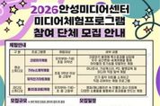 (한국글로벌뉴스 - 박소연 기자) 안성미디어센터는 지역 어린이와 청소년이 미디어를 쉽고 재미있게 접할 수 있도록 ‘2026년 미디어체험프로그램’에 참여할 관내 어린이집, 유치원, 학교 등 단체를 모집한다고 밝혔다. 이번 프로그램은 아이들이 영상과 소리를 직접 다뤄보며 미디어의 원리를 이해하고 창의력과 표현력을 키울 수 있도록 기획된 체험형 교육이다. 영상·라디오 스튜디오를 활용해 진행되며, 공간·대상별 직업체험과 미디어 놀이 중심의 구성으로 어린이와 청소년이 즐겁게 참여할 수 있는 것이 특징이다. 2026년에는 ▲크로마키 체험(우주·세계여행 영상 촬영) ▲TV 뉴스 제작 체험 ▲뮤직 차트 방송 제작 ▲폴리(효과음) 체험 등 다양한 프로그램이 마련된다. 각 프로그램은 연령대에 맞춰 구성되며, 방송 직업 탐색과 실습 중심 활동을 통해 참여자의 흥미와 몰입도를 높인다. 모집 대상은 안성시 관내 6세 이상 어린이부터 초·중·고등학생이 포함된 어린이집, 유치원, 학교, 기관 등 단체로, 최소 10명에서 최대 30명 내외의 15개 팀을 선착순 모집한다. 체험비는 전액 무료이며, 프로그램은 오는 2월부터 5월까지 매주 수요