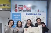 (한국글로벌뉴스 - 박소연 기자) ㈜이츠스낵은 지난 12월 19일 정왕3동 지역사회보장협의체를 찾아 저소득 결식 우려 가구를 위한 주먹밥 200개와 라면 10상자를 전달했다. ㈜이츠스낵은 간식 배송 전문 유통업체로, 매일 다양한 간식을 합리적인 가격에 제공하고 있다. 당일 입고·당일 배송을 원칙으로 식품안전관리인증기준(HACCP) 인증을 받은 업체의 제품만을 취급해, 성인부터 어린이까지 안심하고 먹을 수 있는 신선하고 건강한 간식을 공급하고 있다. 권재은 ㈜이츠스낵 대표는 “지역사회 내 어려운 이웃을 도울 수 있어 기쁘다”라며 “맛있는 주먹밥과 라면이 작은 위로가 되길 바라며, 앞으로도 나눔을 실천하며 이웃과 함께하는 기업이 되도록 노력하겠다”라고 말했다. 양미현 정왕3동장은 “지역 내 취약계층을 위해 관심과 애정을 가져주셔서 감사드린다. 후원품이 필요한 이웃에게 후원품과 함께 온기를 전할 수 있도록 최선을 다하겠다”라고 말했다. 한편, 정왕3동 지역사회보장협의체는 지역 내 후원자들과 협력해 민관이 함께하는 복지 네트워크를 강화하고 있으며, 기부 참여를 희망하는 경우 시흥시1%복지재단을 통해 안내받