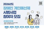 (한국글로벌뉴스 - 박소연 기자) 시흥시는 2월 2일부터 13일까지 ‘2026년 장애인 개인 예산제 시범사업’ 참여자를 모집한다. 장애인 개인 예산제는 장애인이 자신에게 필요한 서비스를 직접 선택하고 관리할 수 있게 지원하는 제도다. 참여자는 자신의 장애인 바우처 서비스 급여의 일부(최대 20%)를 개인 예산으로 전환해 이용계획에 따라 물품 구매ㆍ서비스 이용에 활용할 수 있다. 모집 대상은 신청일 기준 시흥시에 거주 중이고, 장애인 바우처 서비스 4종(▲장애인활동지원서비스 ▲발달장애인 주간 활동 서비스 ▲청소년 발달장애인 방과후활동 서비스 ▲발달재활서비스) 중 1개 이상의 서비스를 받고 있는 장애인이다. 참여자는 개인 예산제 시범사업 사무국인 한국장애인개발원 선정위원회의 심사를 거쳐 선발되며, 선정 결과는 2월 말 안내할 예정이다. 선정된 참여자는 3월부터 4월까지 복지 전문기관을 통해 개인 예산 이용계획을 수립하고, 5월부터 10월까지 6개월간 개인 예산을 활용하면 된다. 사업 참여를 원하는 사람은 2월 2일부터 13일까지 신분증을 지참해 주소지 관할 동 행정복지센터를 방문해서 신청하