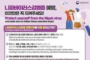 (한국글로벌뉴스 - 박소연 기자) 시흥시는 설 연휴를 맞아 니파바이러스 발생이 보고된 국가로 여행을 계획하고 있는 시민들에게 각별한 주의를 당부했다. 최근 인도 보건당국의 공식 발표(1월 27일)에 따르면, 일부 현지 언론보도와는 다르게 실제로는 인도 서벵골주에서 2명이 니파바이러스에 감염됐으며, 접촉자 196명은 증상이 없었고, 검사 결과 모두 음성이 확인돼 현재까지 추가적인 감염 사례는 보고되지 않았다. 니파바이러스는 동물(과일박쥐ㆍ돼지 등)과 접촉하거나 오염된 식품(대추야자 수액 등)을 섭취하면 감염될 수 있으며, 환자의 체액과 밀접 접촉 시 사람 간 전파도 가능하다. 감염 초기에는 발열, 두통, 근육통이 나타나며 현기증, 졸음, 의식 저하 등 신경계 증상 및 중증으로 악화해 사망에 이를 수 있어 주의가 필요하다. 니파바이러스 감염증은 치명률이 40~75%로 높고 백신ㆍ치료제가 없는 위험한 질병으로 예방이 무엇보다 중요하다. 인도와 방글라데시 등 니파바이러스 검역관리지역을 방문할 경우 과일박쥐나 아픈 돼지 등 야생동물과의 접촉을 피하고, 생 대추야자 수액이나 바닥에 떨어진 과일 등 오염 가능성이 있는 음식
